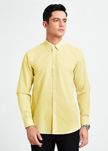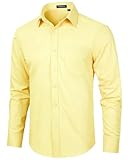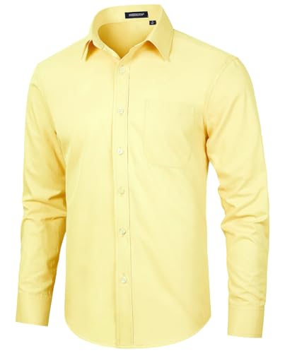 HISDERN Herren Langarm Hemd Hellgelb Businesshemd Freizeithemden Formelle Businesshemden Regular Fit Shirt XXL
