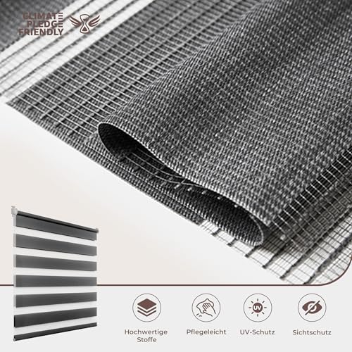 Allesin Doppelrollo Klemmfix ohne Bohren & mit Bohren, Duo Rollos für Fenster und Tür, Klemmrollo Fensterrollo lichtdurchlässig, Sichtschutz und Sonnenschutz, 95x140cm (BxH), Anthrazit