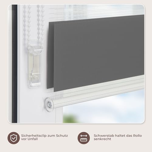 Allesin Doppelrollo Klemmfix ohne Bohren & mit Bohren, Duo Rollos für Fenster und Tür, Klemmrollo Fensterrollo lichtdurchlässig, Sichtschutz und Sonnenschutz, 90x200cm (BxH), Anthrazit