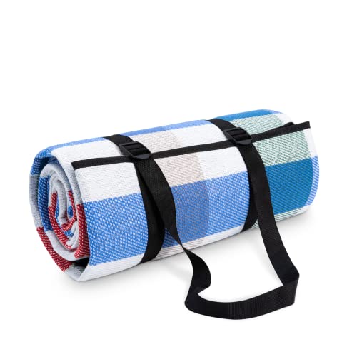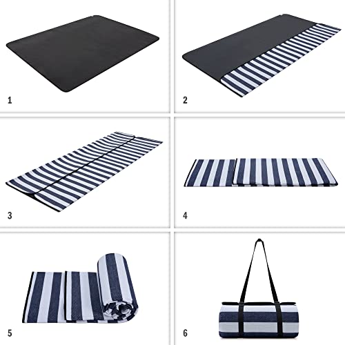 Paco Home Picknickdecke Campingdecke XXL Strand Picknickdecke Wasserdicht Mit Tragegriff Leicht Kompakt Tragbar Isoliert, Farbe:Blau-Weiß 1, Größe:150x200cm
