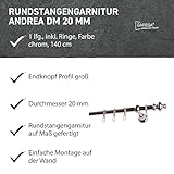 Garesa Gardinenstange Andrea Ø 20mm, 1-läufig, Chrom I Stabile Vorhangstange inkl. Ringe + Faltenlegehaken I Mit Endknopf Profil groß I 140cm