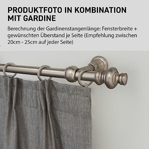 Garesa Gardinenstange Andrea Ø 20mm, 1-läufig, Nickel, matt I Stabile Vorhangstange inkl. Ringe + Faltenlegehaken I Mit Endknopf Profil groß I 320cm
