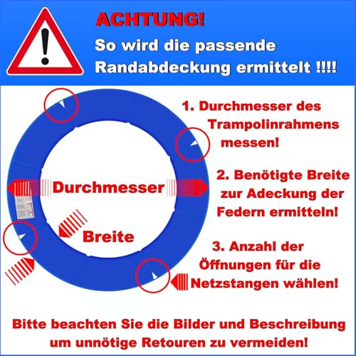 Baunsal® Trampolin Randabdeckung Ø 305 cm mit 25 cm breite in blau und 20 mm dick mit 4 Öffnungen für Netzstangen uv-beständig reißfest Trampolin Ersatzteile Schutzrand Trampolin Outdoor