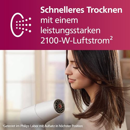 Philips Haartrockner 5000 Series, ThermoShield Technologie, Ionisierungsfunktion, 2.100 W, Weiß, mit Stylingdüse und Volumendiffusor, Modell BHD500/20