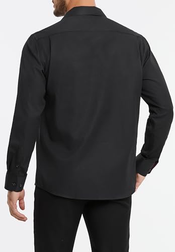 HISDERN Herren Anzug Hemden Klassisch Schwarz Langarm Casual Button Down Kragen Hemd Regular Fit S