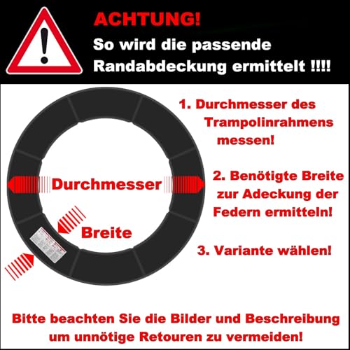 Baunsal® Trampolin Randabdeckung Ø 275 cm mit 30 cm breite in schwarz und 20 mm dick uv-beständig reißfest Trampolin Ersatzteile Trampolin Rahmenpolsterung Schutzrand für das Trampolin Outdoor