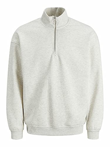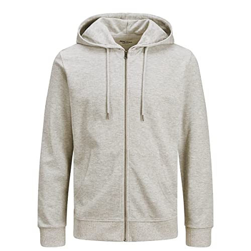 Kapuzensweatjacke JACK & JONES JJEBRADLEY SWEAT ZIP HOOD NOOS, Herren, Gr. M, grau (light grau melange), angeraute Sweatware, Obermaterial: 61% Polyester, 39% Baumwolle, meliert, modisch, loose fit taillenbedeckt, ohne Ausschnitt, Langarm Rippbündchen,