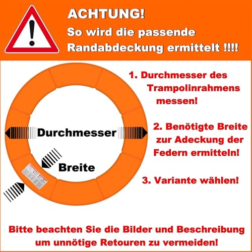 Baunsal® Trampolin Randabdeckung Ø 183 cm mit 28 cm breite in orange und 20 mm dick uv-beständig reißfest Trampolin Ersatzteile Trampolin Rahmenpolsterung Schutzrand für das Trampolin Outdoor