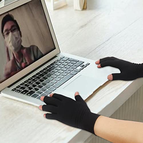 2-Paar Arthritis-Kompressionshandschuhe zur Linderung von rheumatoider Osteoarthritis, Muskelverspannungen lindern, fingerlos, atmungsaktiv & feuchtigkeitsregulierend, Frauen und Männer (Schwarz, S)