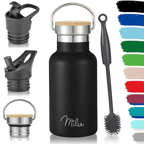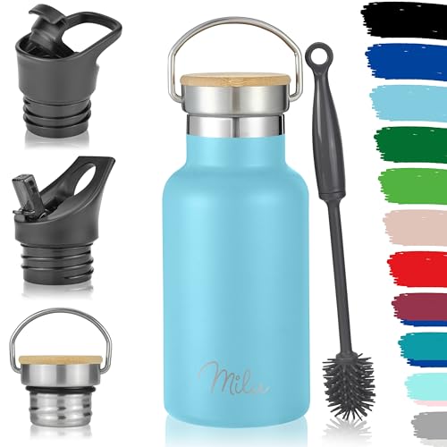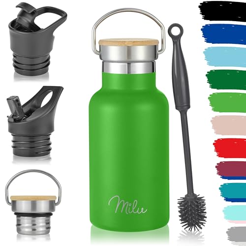 Milu® Trinkflasche mit Gravur personalisiert - als Geschenk-Idee Ostern, Vatertag, Muttertag, Weihnachten, Einschulung, Liebesgeschenk, Geburtstag, Frauen und Männer Mama Papa Kinder (350ml + Gravur)