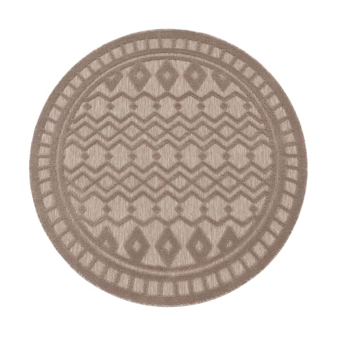 Paco Home Outdoor Teppich wetterfest & langlebig Moderne Boho-Designs mit 3D-Effekt Skandi-Look UV-beständig & robust für Balkon, Garten, Wohnzimmer & Küche, Grösse:200 cm Rund, Farbe:Beige