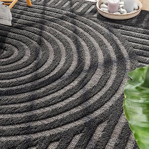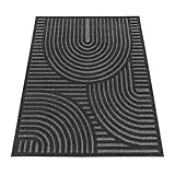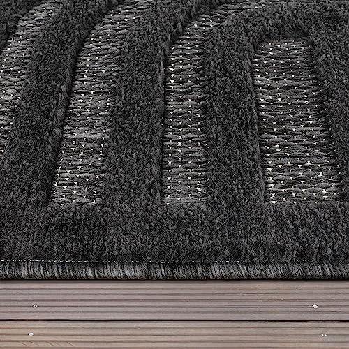 Paco Home Outdoor Teppich wetterfest & langlebig Moderne Boho-Designs mit 3D-Effekt Skandi-Look UV-beständig & robust für Balkon, Garten, Wohnzimmer & Küche, Grösse:60x100 cm, Farbe:Anthrazit 4
