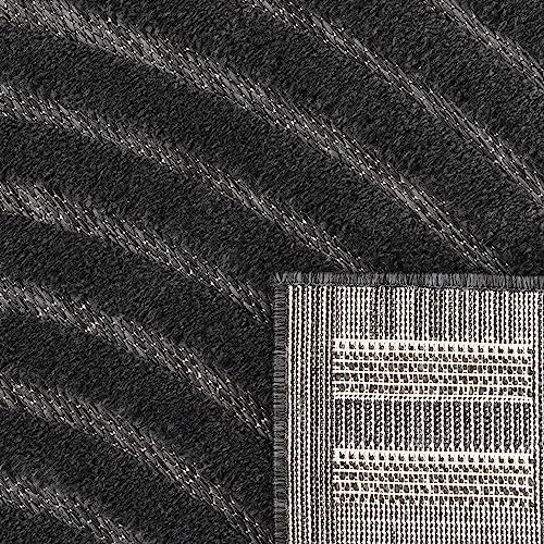 Teppich PACO HOME Livorno 674, grau (anthrazit), B:60cm H:14mm L:100cm, Polypropylen (PP), Teppiche, Uni Farben, moderner Hoch-Tief-Effekt, Scandi-Look, Outdoor geeignet