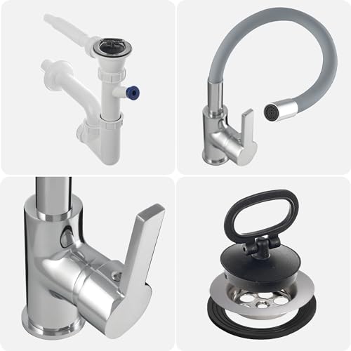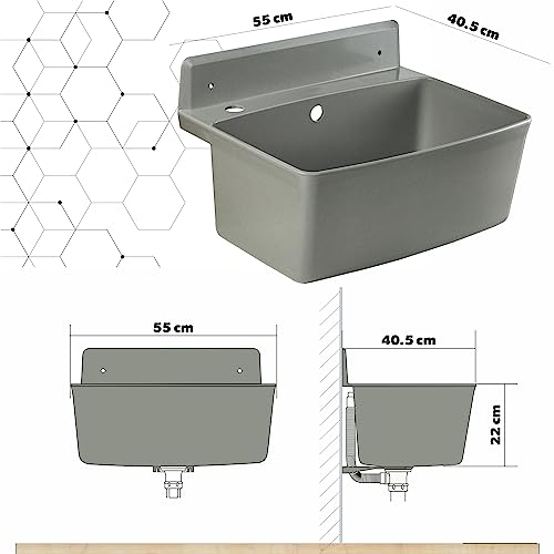 gospo Gartenwaschbecken, 55x42x22.5cm Haushaltsbecken aus hochqualitativem Polystyrol, Ausgussbecken mit Easy-Clean Technologie, Waschbecken für Garten (Grau, Elastischer batterie)
