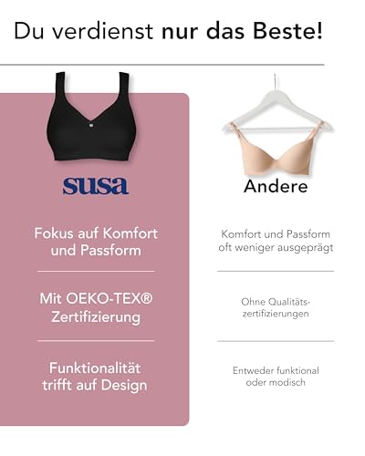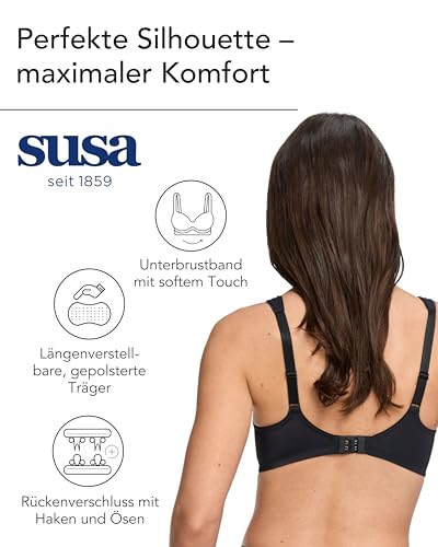 SUSA BH Damen ohne Bügel - Capri 8107 - Größen B-G - BH mit Soft-Touch-Unterbrustband - Gemoldete Cups mit Stützblenden & verstellbaren Träger - Glattes, leichtes Material - Bequemer T Shirt BH