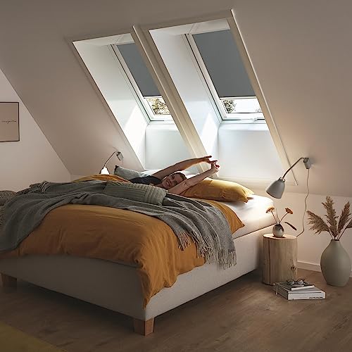 Original Roto Verdunkelungsrollo ZRV - Nahezu vollständige Verdunkelung - Führungsschiene Weiß - Dachfenster Baureihe Designo R6/R8, i8 und Classic 64/84 - Größe 074/098 | 07/09 - Farbe Dunkelgrau