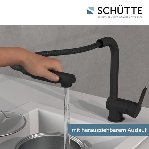 Schütte Küchenarmatur LONDON, Niederdruck Armatur Küche, Wasserhahn Küche ausziehbar, Mischbatterie Küche in Schwarz matt