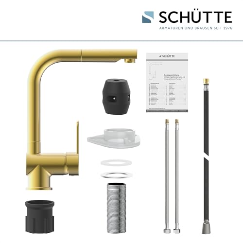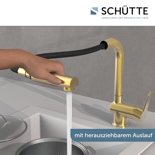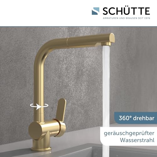 SCHÜTTE 79770 London Küchenarmatur mit ausziehbarer Geschirrbrause, 360 Grad schwenkbarer Wasserhahn für die Küche, Mischbatterie mit Einhebelmischer, Spültischarmatur in Gold