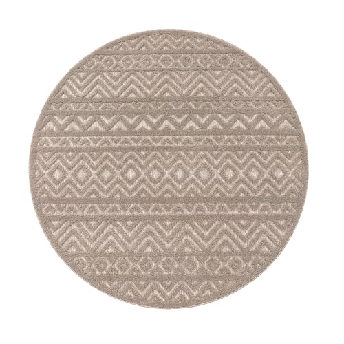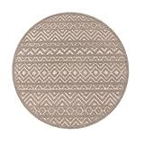 Paco Home Outdoor Teppich wetterfest & langlebig Moderne Boho-Designs mit 3D-Effekt Skandi-Look UV-beständig & robust für Balkon, Garten, Wohnzimmer & Küche, Grösse:160 cm Rund, Farbe:Beige 3