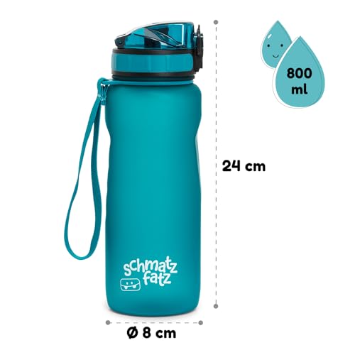 schmatzfatz Sport-Trinkflasche, hält das Wasser kalt, Trinkflaschen für Erwachsene, Kinder, Trinkflasche aus Kunststoff, BPA-frei, wasserdicht, für Herren, Damen, Wasserflasche, ohne Strohhalm, 800