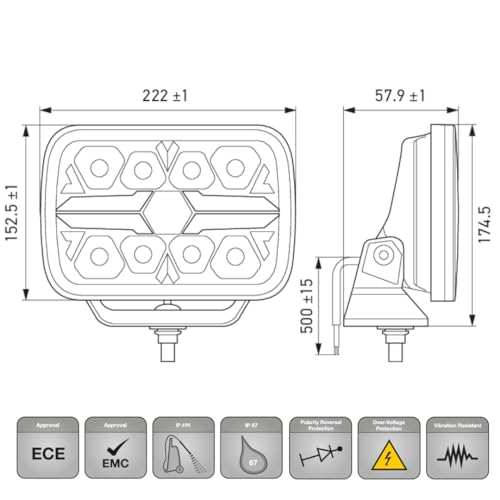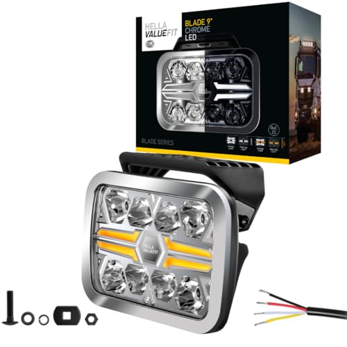 HELLA VALUEFIT Blade Chrome RE 9" LED Fernscheinwerfer - 12/24V - rechteckig - Referenzzahl: 25 - nicht vormontiert - ECE-148/ECE-149 - Lichtscheibenfarbe: glasklar - Kabel: 500mm - 1FJ 357 199-091