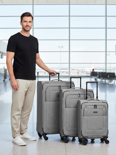 REDOLZ Koffer-Set 3-teilig für Damen & Herren | leichte & stabile Reise-Trolleys, hochwertiges Softcase, 4 Doppelrollen & TSA-Schloss |erweiterbar mit Dehnfalten (Essentials 12)