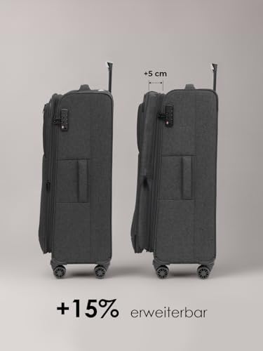 REDOLZ Koffer-Set 3-teilig für Damen & Herren | leichte & stabile Reise-Trolleys, hochwertiges Softcase, 4 Doppelrollen & TSA-Schloss |erweiterbar mit Dehnfalten (Essentials 12)