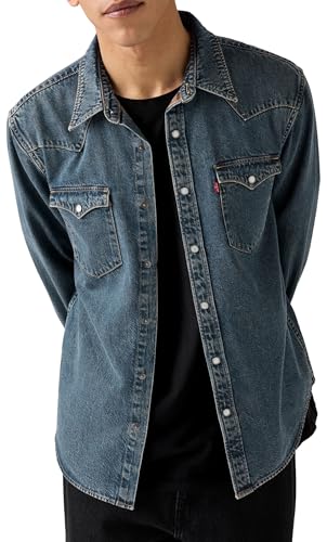 Jeanshemd LEVIS LE BARSTOW WESTERN STAND, Herren, Gr. M, M, freeport braun weft, Web, Obermaterial: 100% Baumwolle, normal, Hemden, mit Brusttaschen