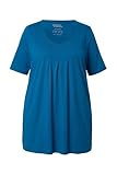 Ulla Popken Damen große Größen Übergrößen Plus Size T-Shirt, Zierfalten, A-Linie, Rundhals, Halbarm, Modal blaugrün 46+ 796473768-46+