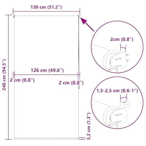 Duschrollo 130x240 cm Stoffbreite 126 cm Vidaxl