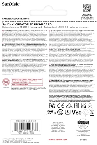 SanDisk Creator SD-UHS-II Speicherkarte 128 GB (Für DSLR- und Mirrorless-Kameras, 6K-Video, V60, UHS-II, 280 MB/s Lesen, RescuePRO Deluxe, Adobe Creative Cloud)