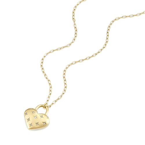 Kette mit Anhänger FOSSIL Schmuck Geschenk Edelstahl SADIE Herz, gold (gelbgoldfarben, kristallweiß), Halsketten, Damen, Edelstahl, L: 71 B: 2,5mm, mit Glasstein, B:2,5mm