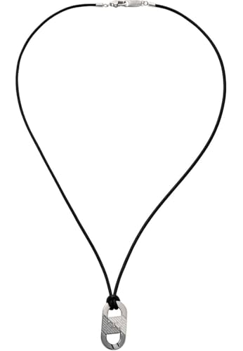 ARMANI Herren Kette mit Anhänger, Leder und Edelstahl, SCHWARZ