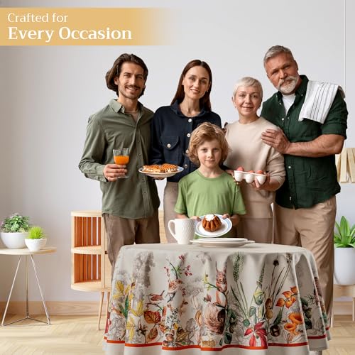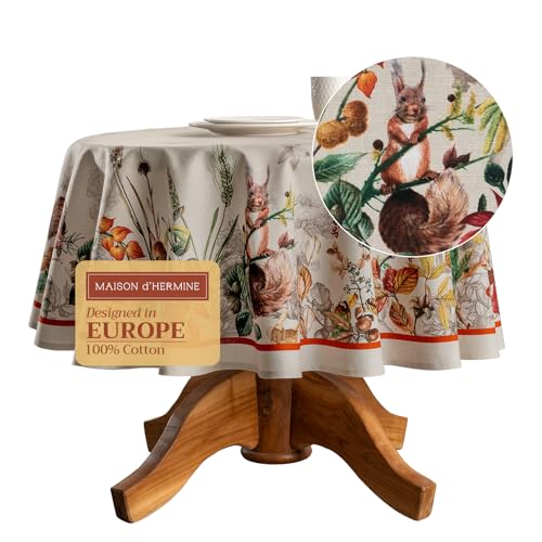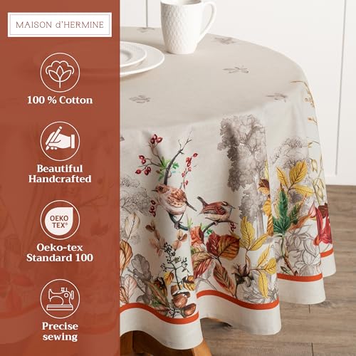 Maison d' Hermine Tischdecke, rund, 160 cm, 100 % Baumwolle, wiederverwendbar, dekorativ, für den Alltag, Esszimmer, Bauernhaus, Zuhause, Party, Feste und Hochzeit, Recolte