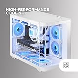 Mars Gaming MC-FUSIONM, Gaming Micro-ATX Gehäuse, Seitliches Fenster & Gebogenes Frontglas Gehärtetem Glas, PC Minitower Doppelkammer, Flüssigkeitskühlung Unterstützung, Optimierter Innenraum, Weiß