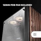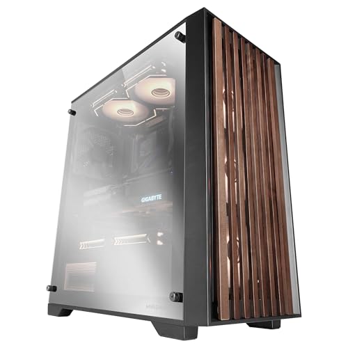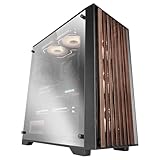 Mars Gaming MC-Wood, ATX-PC-Gehäuse, Holzfrontplatte, Seitliches Verchromtes Glas, 120mm FDB-Lüfter, Flüssigkeitskühlung bis 360mm, Dual-Kammer, Kabelmanagement, Semi-Tower-PC, Schwarz