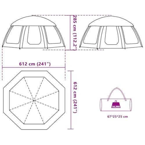 vidaXL Poolzelt mit abnehmbarem Überzelt Netzwänden Azurblau 612x612cm, Pooldach, Pool-Pavillon, wasserdichtes Zelt, Poolpartyzelt, Poolüberdachung