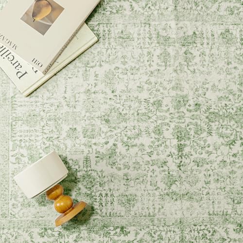 HUGEAR Vintage Grün Waschbarer Teppich Wohnzimmer 150x210cm Retro Rugs for Living Room Weich rutschfest Groß Tepich Kurzflor Schlafzimmer Carpet Living Room Bedroom Esszimmer Teppiche Büro