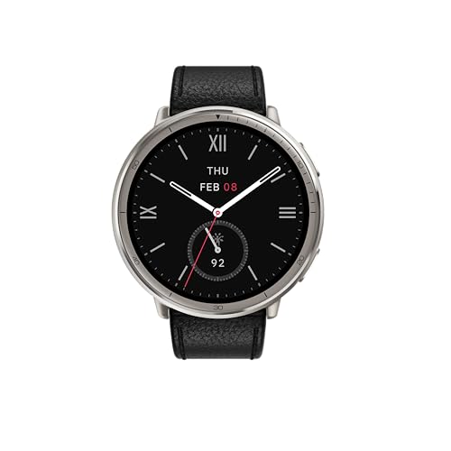 AMAZFIT Active 2 Round Smartwatch Edelstahl Leder, 20 mm, Black