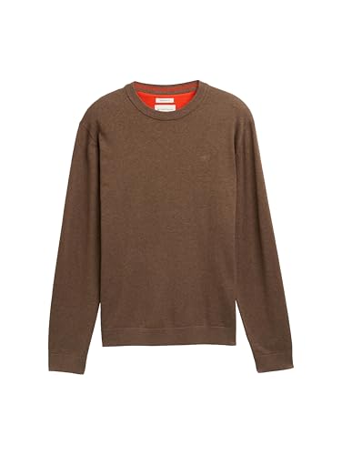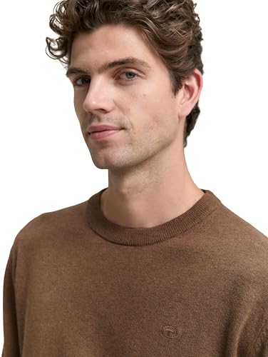 Rundhalspullover TOM TAILOR, Herren, Gr. L, beige (schwarz taupe melange), Strick, Obermaterial: 100% Baumwolle, regular fit, Rundhals, Bündchen, Pullover, mit Logostickerei