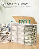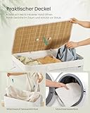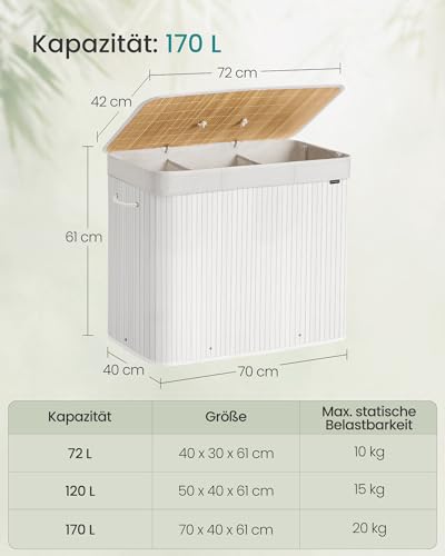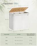 SONGMICS Wäschekorb mit Deckel, 3 Fächer, 170 Liter, Wäschesammler aus Bambus, faltbar, Wäschesack herausnehmbar und maschinenwaschbar, mit Griffen, für Waschküche, Schlafzimmer, weiß LCB013W01