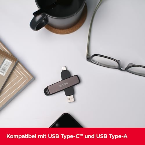 SanDisk Extreme PRO DUAL Drive 2 TB, Flash-Laufwerk 2-in-1 USB Type-A und USB Type-C, Hochleistung, Lesegeschwindigkeit bis zu 1000 MB/s, Automatische Backups, Dateiverwaltung, Metallgehäuse, Schwarz