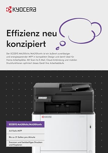 Kyocera Ecosys MA2101cfx Farblaserdrucker Multifunktionsgerät. Drucker Scanner Kopierer, Faxgerät. Multifunktionsdrucker inkl. LAN, USB 2.0 und Mobile-Print-Funktion