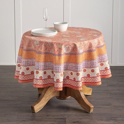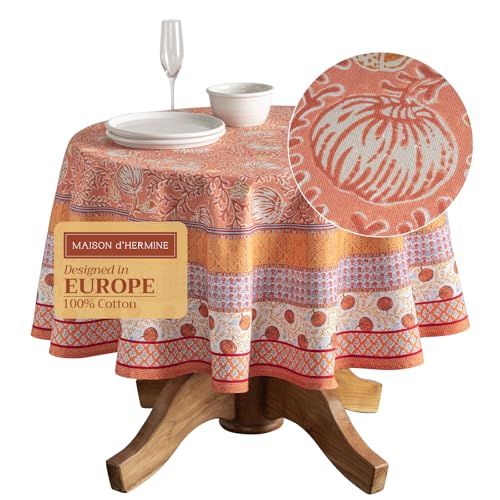 Maison d' Hermine Tischdecke, rund, 100 % Baumwolle, wiederverwendbar, dekorativ, für den Alltag, Esszimmer, Bauernhaus, Zuhause, Party, Feste und Hochzeit, 160 cm, Erntefest