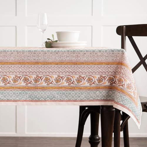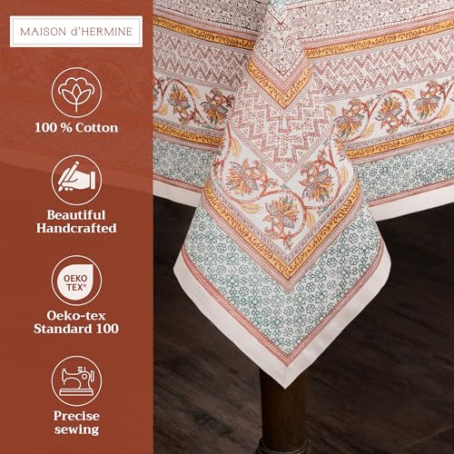 Maison d' Hermine Tischdecke, quadratisch, 100 % Baumwolle, wiederverwendbar, dekorativ, für den Alltag, Esszimmer, Bauernhaus, Zuhause, Party, Feste und Hochzeit, 137,2 x 137,2 cm, Bunt (Nila)