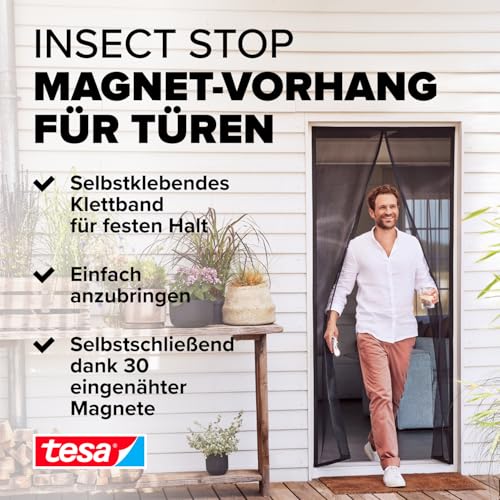 tesa Magnetvorhang XL selbstschließend - Insektenschutzvorhang mit Magneten für Balkon- und Terrassentüren - zur einfachen Montage ohne Bohren - 2,4 m x 1,2 m