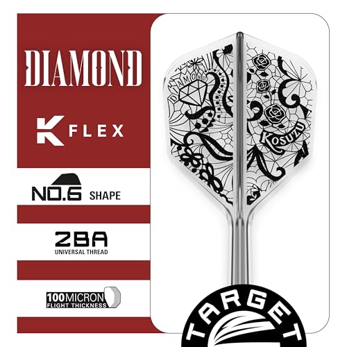 Target Japan Diamond K Flex Dart Flights and Shaft System, No.6 | 3er-Pack Kflex All In One Flight, Player Edition Kosuzu Iwao Dartzubehör | K-Flex Dartschaft – Mittelstufe (26 mm)
