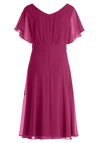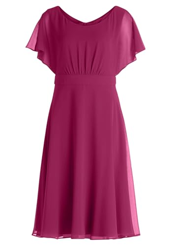 Cocktailkleid VERA MONT Damen Cocktailkleid kurzarm, Damen, Gr. 46, Normalgrößen, rosa (sweet berry), Chiffon, Obermaterial: 100% Polyester recycelt. Futter: 100% Polyester., ausgestellt kurz, Rundhals, Kleider, Raffung