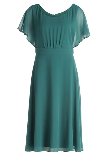 Cocktailkleid VERA MONT Damen Cocktailkleid kurzarm, Damen, Gr. 46, Normalgrößen, grün (schwarz emerald), Chiffon, Obermaterial: 100% Polyester recycelt. Futter: 100% Polyester., ausgestellt kurz, Rundhals, Kleider, Raffung