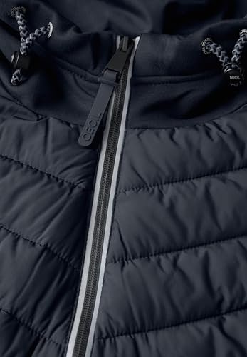 Outdoorjacke CECIL, Damen, Gr. S (38), blau (schwarz navy blau), Stoff, Rückseite und Ärmel: 67% Polyester, 27% Viskose, 6% Elasthan; Steppfront: 100% Polyester, unifarben, casual, gerade normal, ohne Ausschnitt, Langarm Bündchen, Jacken, mit Kapuze mit T
